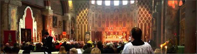 S. Agatha’s Church, Portsmouth, is a grand red brick Italianate basilica of 1894, built for the famous Anglo Catholic priest Fr Robert Dolling. The spacious interior is enriched with polished granite, marble, alabaster, carved stone and coloured glass.